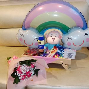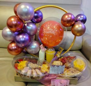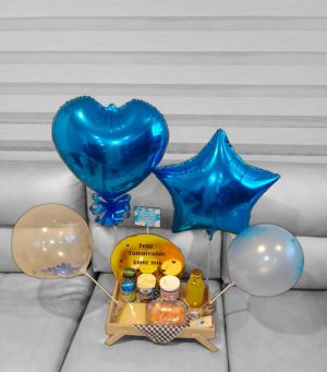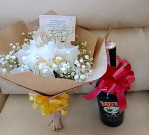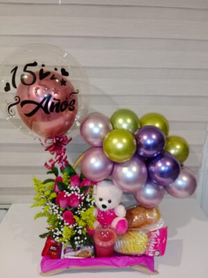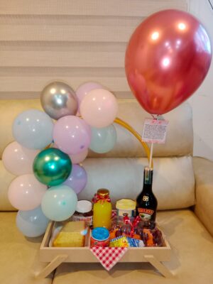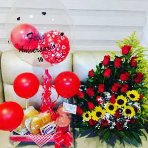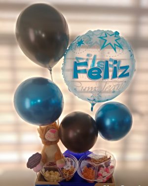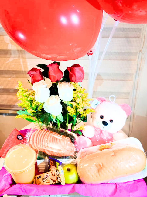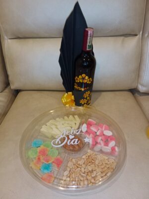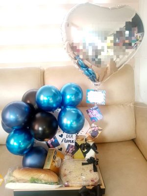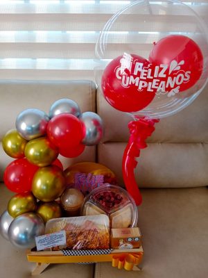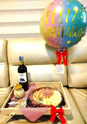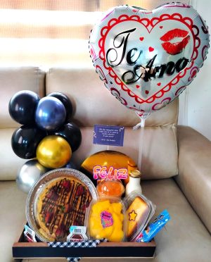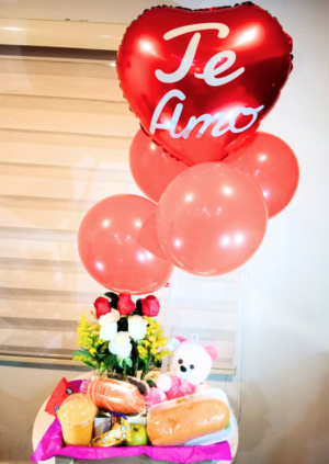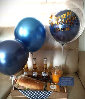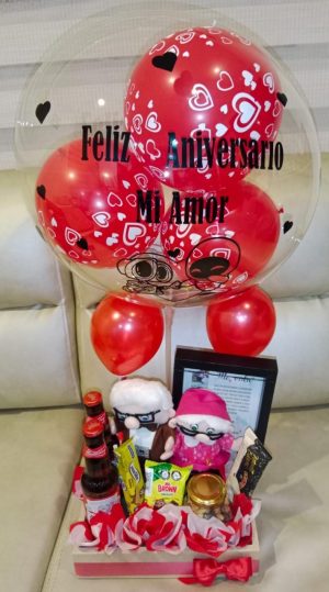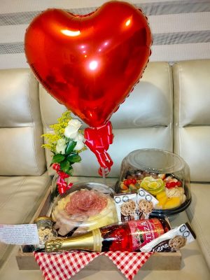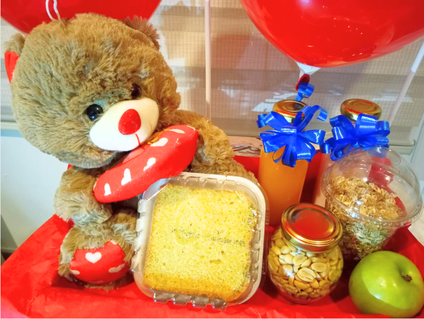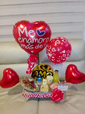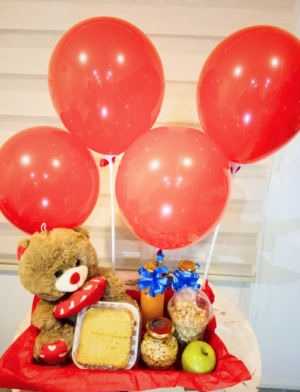 Corazón de fresas achocolatadas, oso de chocolate y cerveza